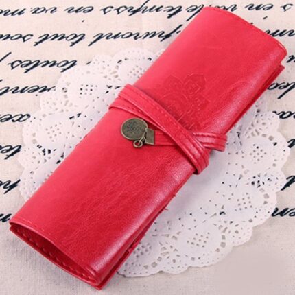 빨간색 스웨이드 가죽 케이스 / 미술용품 수납 가방 정리