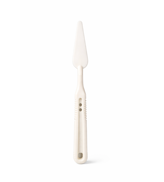나이프 하단에는 팔레트 바닥에 직접 닿지 않도록 하는 턱이 있어 작업 중 위생적으로 사용할 수 있으며 물감이 불필요하게 묻는 것을 줄여줍니다.