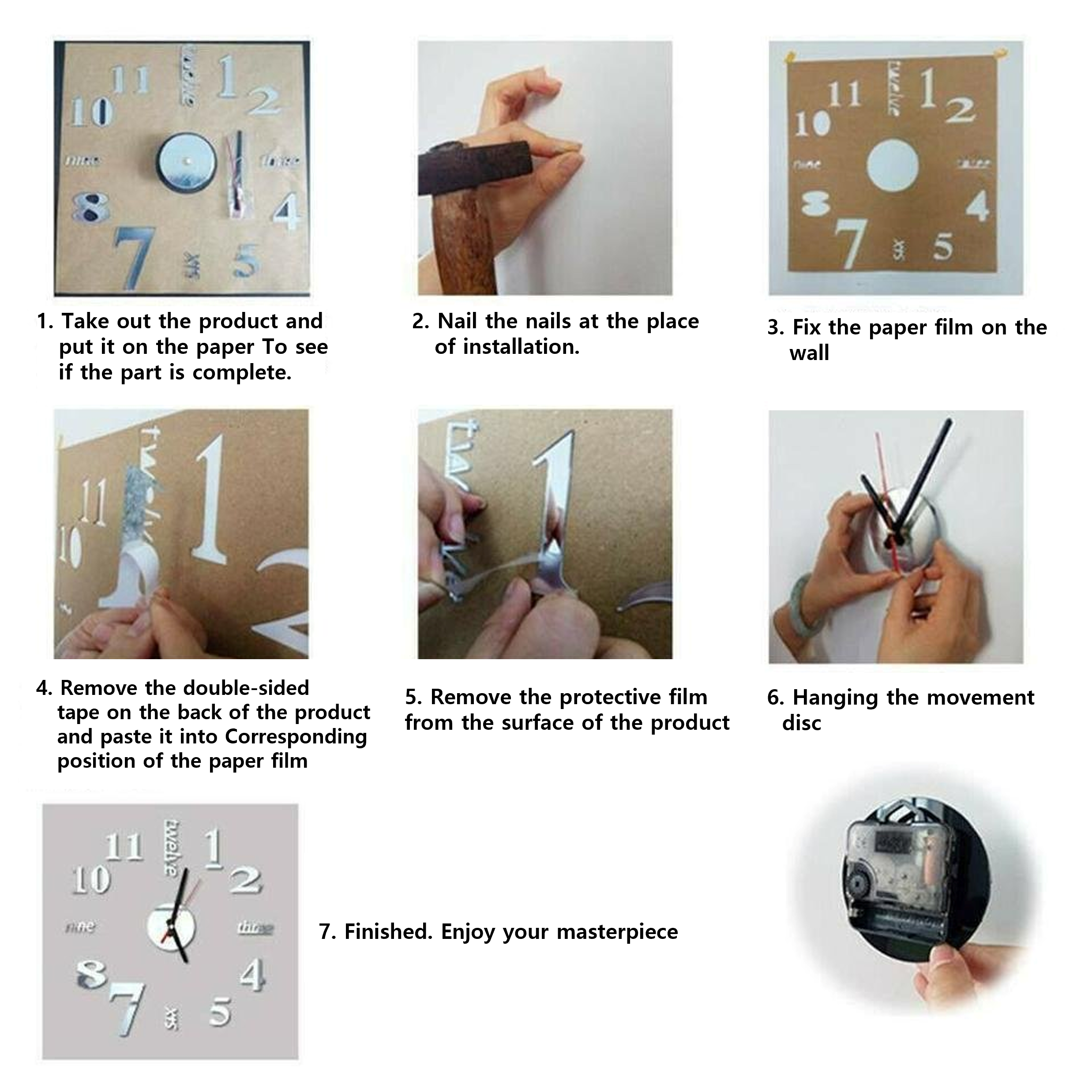 ○ Package Includes: 1 set of DIY 3D wall clock stickers (template sheet included)