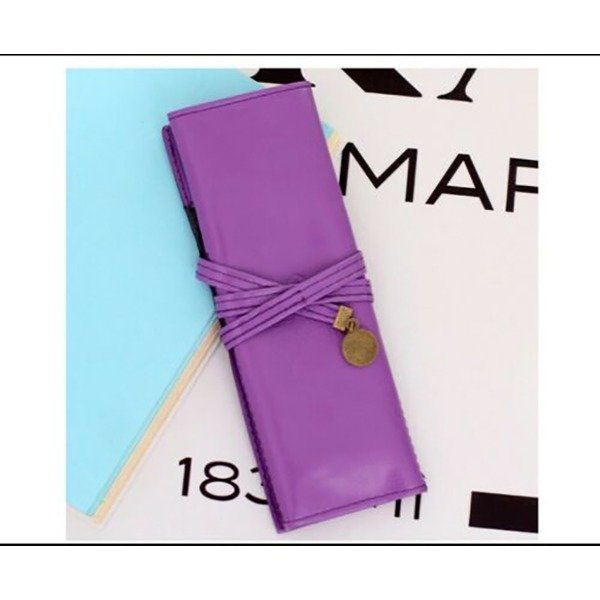 보라색 스웨이드 가죽 케이스 / 미술용품 수납 가방 정리