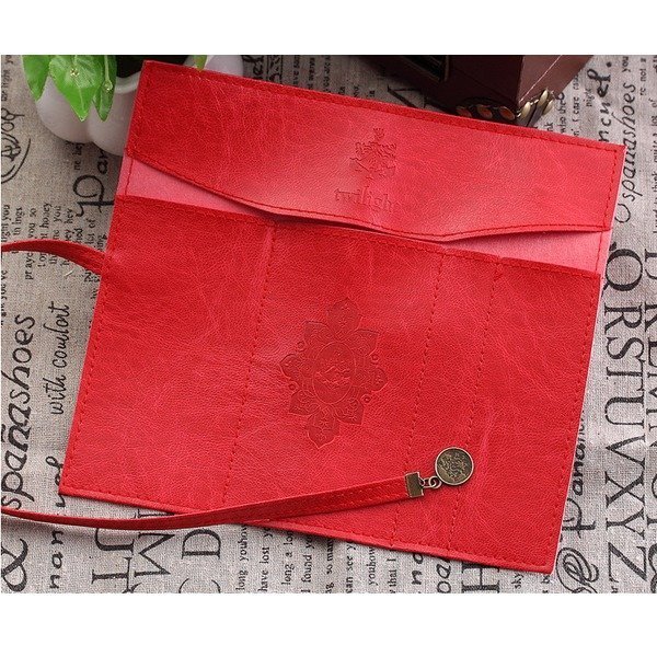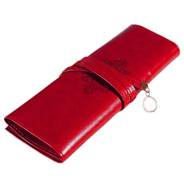 빨간색 스웨이드 가죽 케이스 / 미술용품 수납 가방 정리