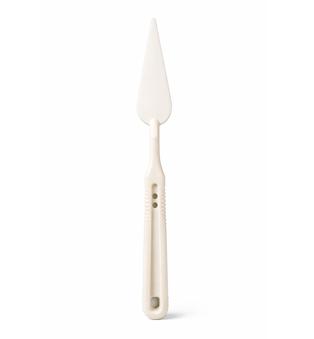 나이프 하단에는 팔레트 바닥에 직접 닿지 않도록 하는 턱이 있어 작업 중 위생적으로 사용할 수 있으며 물감이 불필요하게 묻는 것을 줄여줍니다.