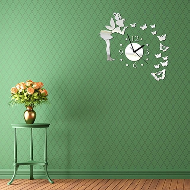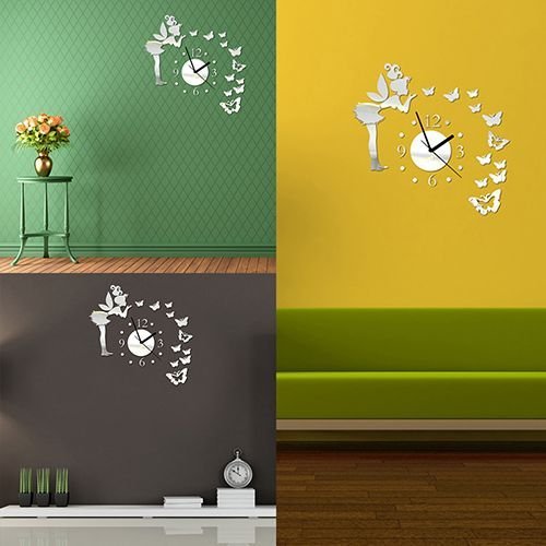 Fairy Butterfly Design DIY Acrylic Interior Wall Clock / Butterfly Angel Silent Movement