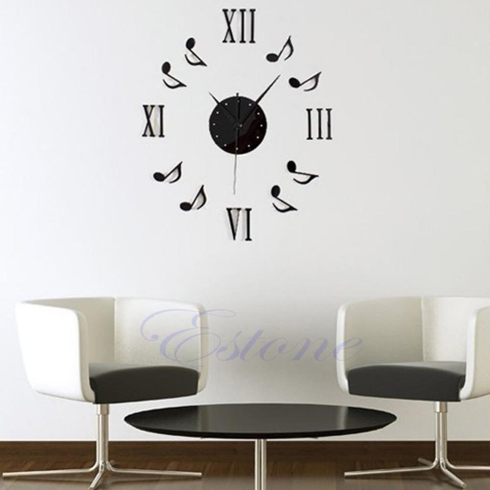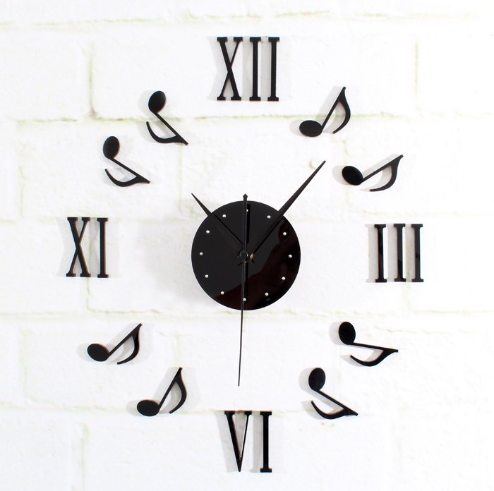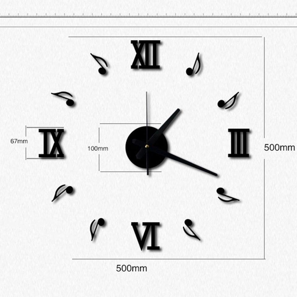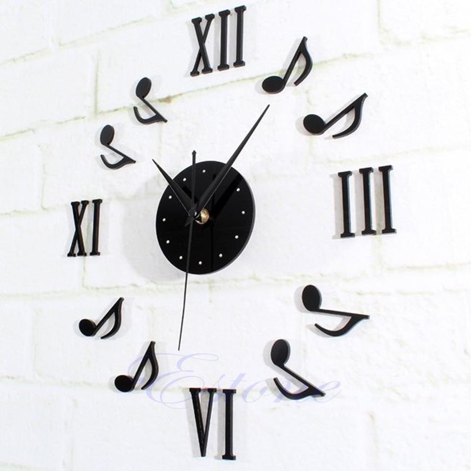 Musical Note DIY Interior Wall Clock / Black Roman Numeral Music Score Note Clock